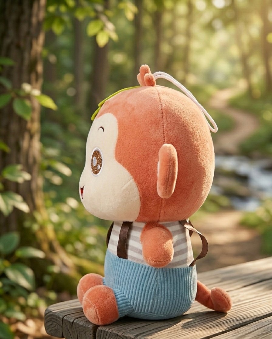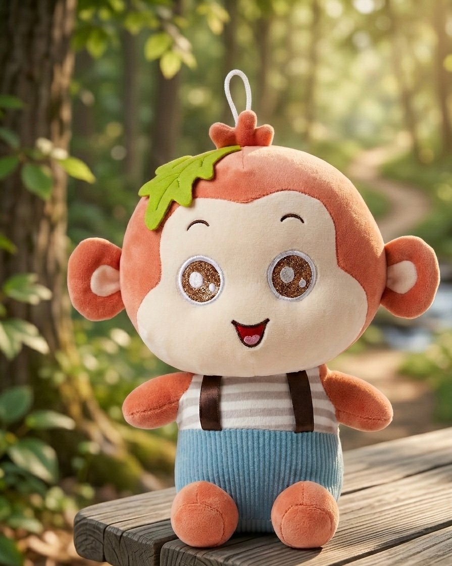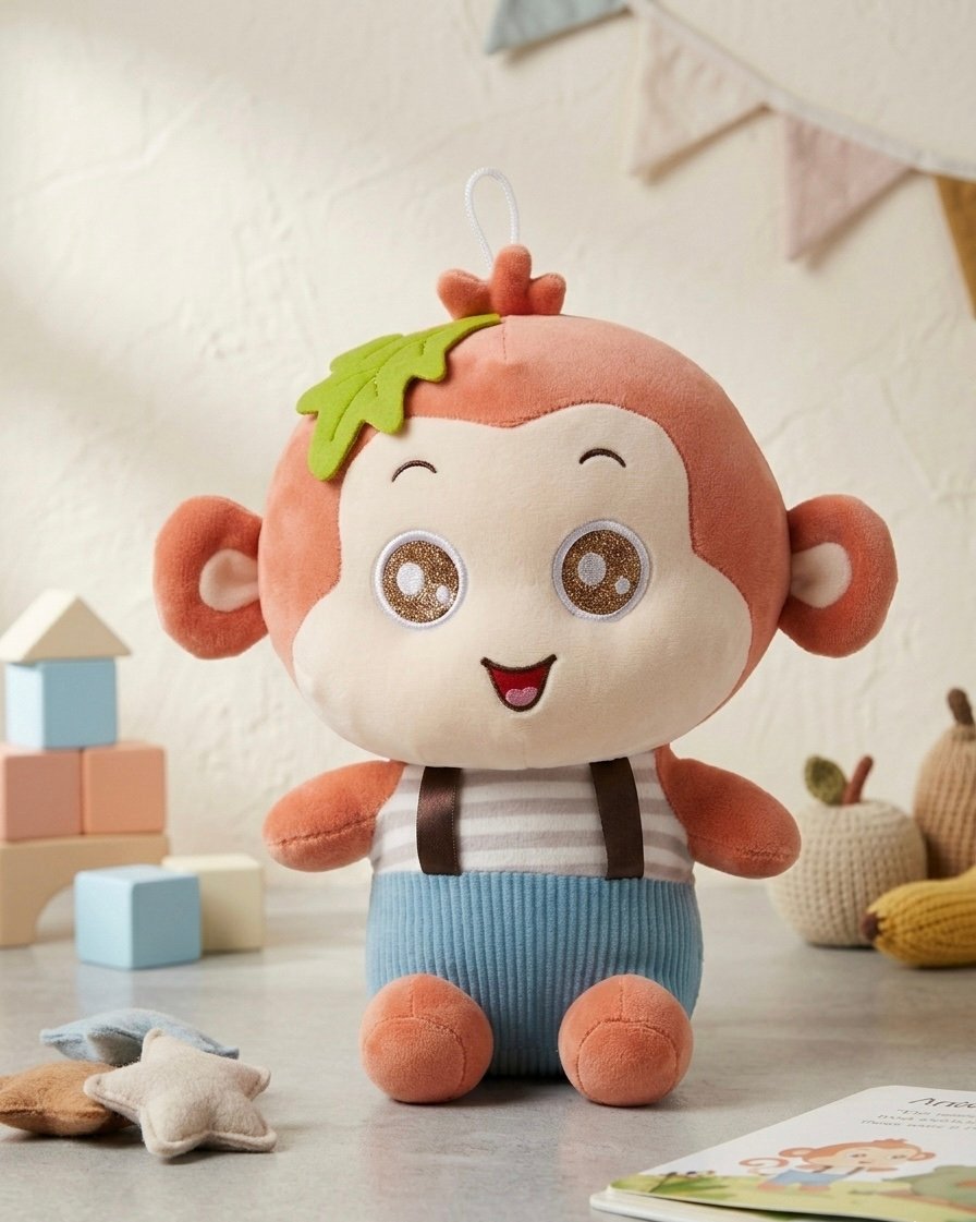 Adorable Monkey Plush Toy with Leaf Detail and Blue Overalls